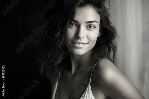 hair, woman, beauty, model, face, smile, people, lady, fashion, brunette, glamour, person, dress, make-up, skin, studio, 1, sensual, lip, black, body, bra, eye, style, sensuality