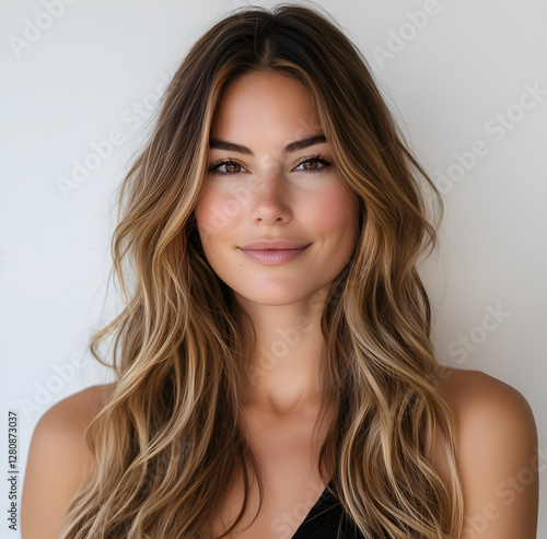 Portrait of a beautiful young woman with clean, fresh skin on a white background.