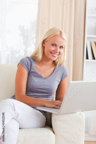 missy, caucasian appearance, gorgeous, happy, cyberspace, modern, natural, notebook, smile, one person, adult, woman, blond, blond, attractive, beautiful, beauty, casual attire, cheerful, clothing, computer, couch, cute, enjoy, enjoying, enjoyment, fresh, happiness, home, house, human, indoor, interior, laptop, laughing, leisure, lifestyle, living room, looking, network, pretty, sexy, sitting, sofa, technology, web, wireless, work