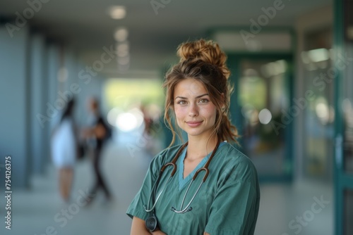 Portrait of a compassionate nurse with a stethoscope around her neck, symbolizing care