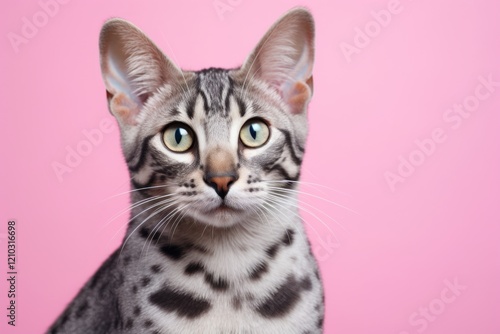 Portrait of a cute egyptian mau cat in front of pastel or soft colors background