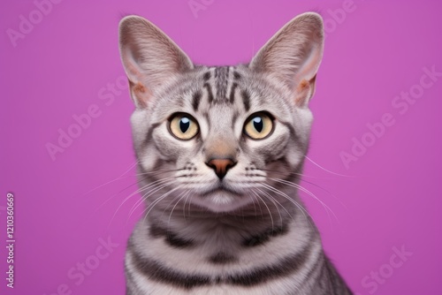 Portrait of a cute egyptian mau cat in front of solid color backdrop
