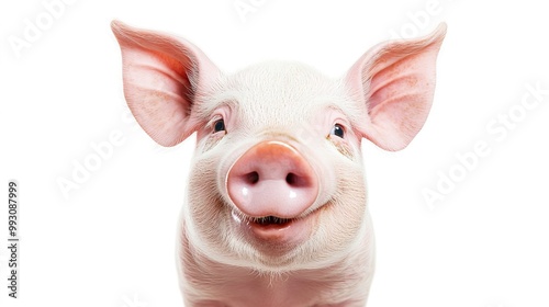 Portrait of a cute happy pig isolated on white background, concept of happy farm, healthy life, funny animal portrait on white background.