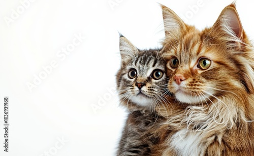 Portrait of a dog Russian Spaniel and cat Scottish Straight isolated on white background , isolated on white background, , copy space for text,