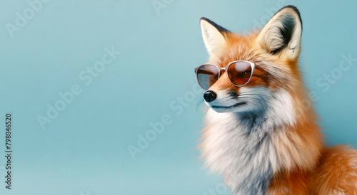 Portrait of a fashionable fox in sunglasses isolated on a blue background. Generative AI