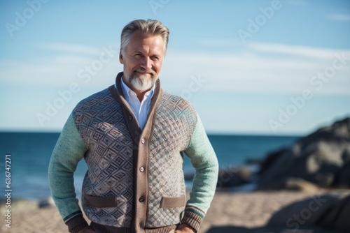 Portrait of a handsome senior man standing on the beach on a sunny day