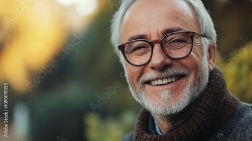 senior, man, portrait, smiling, happy, eyeglass, autumn, park, elderly, happiness, cheerful, outdoors, nature, fall, lifestyle, retirement, joy, well-being, positive, adult, healthy, active, gold, year, wisdom, contentment, relaxation, leisure, optimistic, carefree, silver, hair, facial, expression, head shot