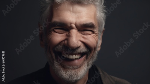 Portrait of a happy senior man smiling at the camera on a dark background.Generative Ai