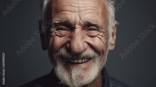 Portrait of a happy senior man smiling at the camera on a dark background.Generative Ai