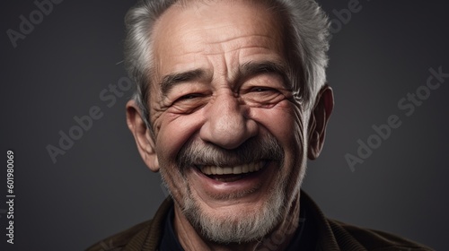 Portrait of a happy senior man smiling at the camera on a dark background.Generative Ai