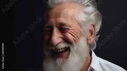 Portrait of a happy senior man smiling at the camera on a dark background.Generative Ai
