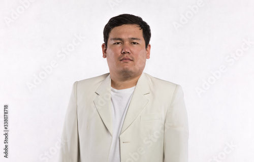portrait of a Kazakh man in a white jacket on a white background