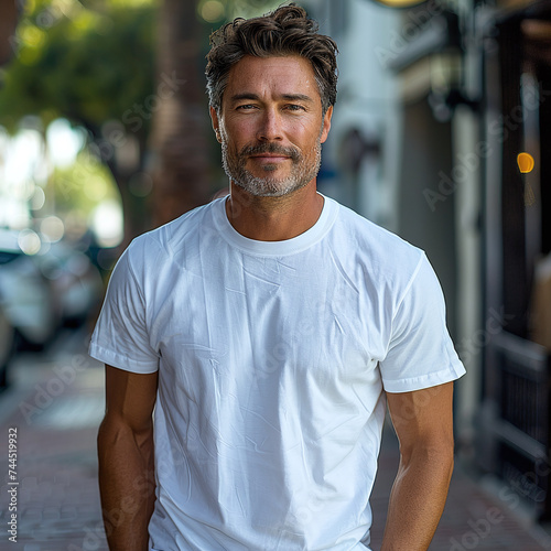 photogenic, t-shirt, casual attire, person, guy, people, model, smiling, shirt, standing, fashion, man, smile, confident, 1, looking, lifestyle, face, studio, expression, single, hair