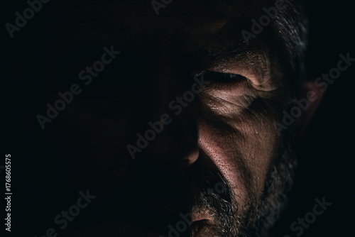 ambient, artistic, atmosphere, beard, blue, breath, closeup, contrast, dark, detail, diffusion, dramatic, emotion, emanating, expression, eye, face, sharpened, fog, foggy, human face, intense, lighting, man, masculine, mist, moody, mystery, mystic, photo, portrait, power, realism, sharp, skin, smoke, steam, texture, vapour