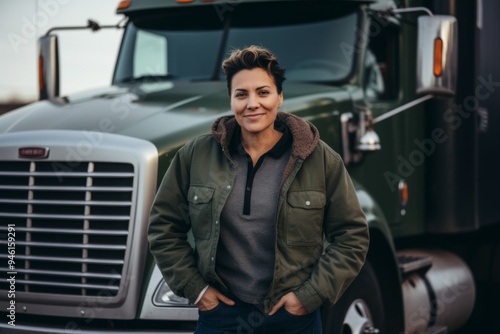 people, portrait, middle, aged, body, positive, hispanic, truck, driver, occupation, work, transportation, professional, strong, confidence, outdoors, vehicle, road, travel, industry, daytime, modern, technology, empowerment, resilience, determination, 40s, 50s, emotion, activity, lifestyle, focused, life events, dedication, skill, heavy, equipment, logistic, delivery, 1, equity, inclusion, diversity, lifestyle, copy space, female, woman
