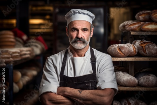people, portrait, middle-aged, male, hispanic, men at work, bakery, man, professional, baker, occupation, work, food industry, baking, artisan, craftsmanship, bread, culinary, food preparation, skilled, employment, job, career, pastry, artisanal, traditional, kitchen, chef, baked goods, fresh, quality, hand-made, dough, uniform, life events, industry, cooking, production, lifestyle, copy space