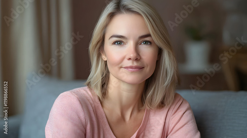 head, shot, portrait, pretty, blond, woman, looking, calm, serene, relaxed, natural, beauty, indoor, soft, smile, casual attire, light, tone, bright, cosy, warm, friendly, attractive, elegant, youthful, coiffure, skin, eye, expression, sitting, comfortable, peace, gentle, lovely, happy, cheerful, lifestyle, closeup, personal, intimacy, calmness, modern, interior, decor, facial, feature, charme, warmth