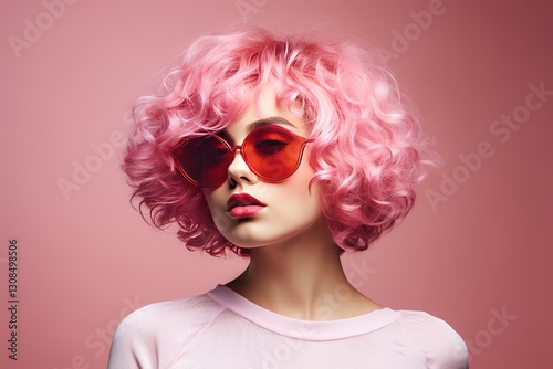 portrait, pretty, young, woman, dark, sunglasses, short, coiffure, pink, wavy, hair, background, trendy, fashion, stylish, chic, contemporary, modern, fashionable, cool, confident, glamour, urban, eyewear, hue, feminine, bold, youthful, glamourous, casual attire, theme, beauty, look, style, vibrant, vibe, atmosphere, appearance