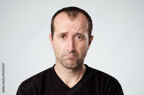 man, sad, unhappy, sorrowful, expression, face, portrait, caucasian, adult, concept, photogenic, male, sorry, unlucky, delusion, bad luck, depression, bad, luck, disappointment, frustration, crisis, stress, confused, remorse, closeup, confusion, despair, executive, fear, head, mistake, nervous, panic, quit, scared, thought, worry, breakup, fractured, shame, abuse, conflict, defeat, desperation, emotion, employee