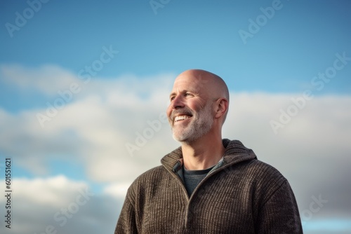 portrait, smiling, smile, man, outside, sky, happy, person, 1, male, outdoors, nature, cloud, face, looking, people, blue, beautiful, caucasian