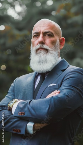 senior, businessman, confidence, bearded, man, suit, attaching, elder, executive, corporate, portrait, professional, attire, mature, male, leadership, experienced, setting, business, smart, clothing, formal, wear, successful, entrepreneur, dignified, elegant, serious, expression, determined, manager, wisdom, authoritative, standing, stylish, fashion, senior, natural, background