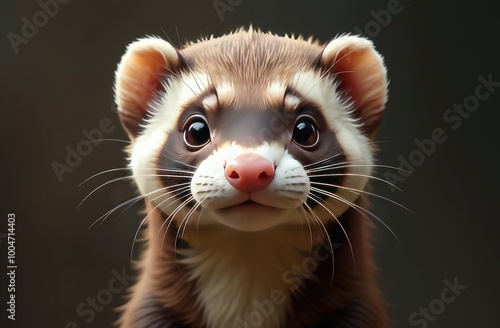 Portrait of a serious ferret on a black background