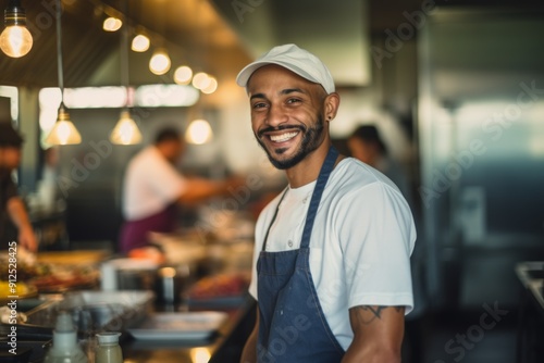 Portrait of a smiling American chef in the kitchen