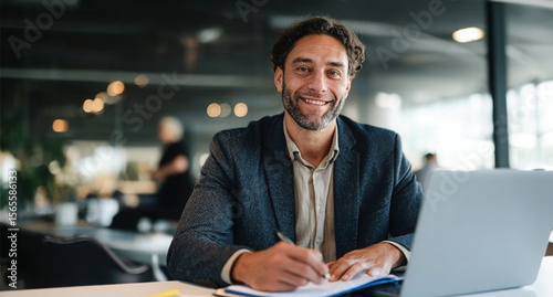 portrait, business, man, smile, face, happy, laptop, computer, person, online, work, planning, workplace, journalist, article, male, office, suit, digital, professional, job, cyberspace, employee, project, website, entrepreneur, ambition, confident, productivity, innovation, strategy, leadership, typing, workspace, manager, creative, profile, startup, deadline, multitask, brainstorming, communication, desktop, marketing, workflow, growth