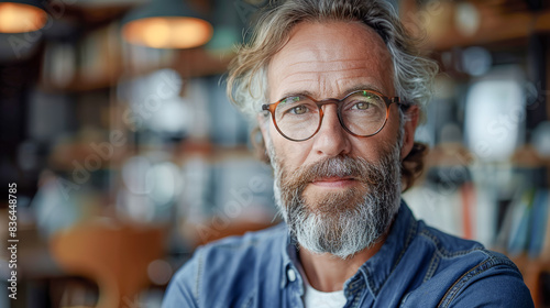 Portrait of a Smiling Male Entrepreneur Capturing the Charisma and Confidence of a Successful Business Owner, Radiating Self-Assuredness and Managerial Excellence Wallpaper Digital Art Poster