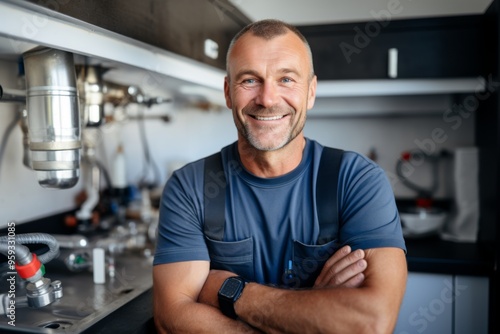 people, man, male, middle-aged, plumber, smiling, portrait, caucasian, professional, work, occupation, service, maintenance, repairman, tool, job, technician, handyman, home improvement, workwear, expert, accurateness, indoor, fixing, blue-collar, customer service, trustworthy, job site, home repair, industry, plumbing, installation, pipe, sink, bathroom, kitchen, utility, dependable, craftsmanship, technical, household, infrastructure, lifestyle, copy space, 1