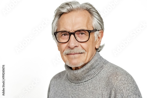 senior, man, male, portrait, face, smile, happy, smiling, goggles, grey, hair, white, background, sweater, turtleneck, wrinkled, wrinkle, elderly, old, age, aged, retirement, wisdom, life events, grandfather, father, mature, looking, camera, isolated, studio, shot, clean, professional, corporate, business, casual attire, head shot, close, closeup, side, view, head, cut, thoughtful, focused, thinking, serious