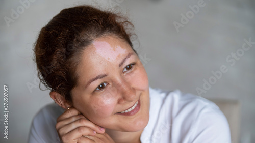 Portrait of a smiling woman with Vitiligo Disease.