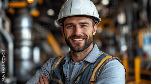 men at work, portrait, hard hat, smile, industrial, uniform, safety, male, job, construction, confident, engineer, factory, helmet, professional, man, industry, work, protection, safety-gear, labor, working, machinery, engineering, occupation, person, job site, happy, workwear, manpower, employee, equipment, manual labor, workplace, hard worker, smiling, strong, young, blue-collar, mechanical, building, cheerful, man, people, face