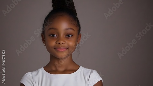 girl, children, portrait, young, black, african, smile, happy, cute, adorable, beautiful, pretty, fashion, model, children, children, teenage, toddler, youth, face, expression, joyful, cheerful, positive, confident, innocent, sweet, dark skin, brown skin, updo, studio, background, grey background, photo, image, photo, picture