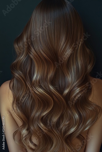 Portrait of a woman from behind showing her long wavy hair