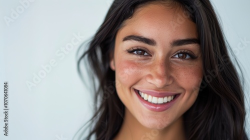 Portrait of a woman showcasing hair care and makeup products in a studio, highlighting shine, texture, and wellness through aesthetic cosmetics and styling motion