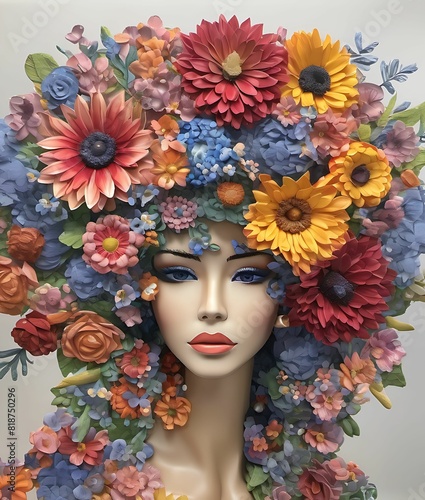 woman, beauty, fashion, hair, face, flower, model, flower, spring, make-up, pink, people, art, skin, chaplet, floral, red, nature, summer, glamour, coiffure, make-up, colourful, care, style