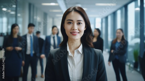 portrait of a young asian businesswoman in office, looking at camera