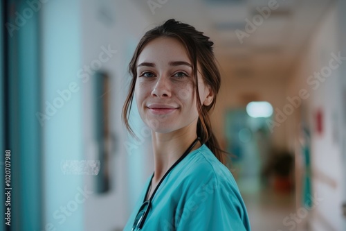 Portrait of a young attractive nurse at the hospital