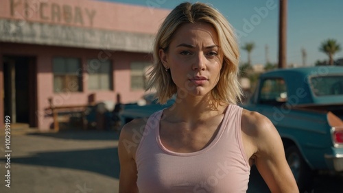 adult, attractive, background, beautiful, beauty, blond, casual attire, caucasian, fashion, female, girl, hair, coiffure, lady, lifestyle, model, outdoors, people, person, portrait, posing, pretty, sport, street, style, summer, trendy, urban, woman, young