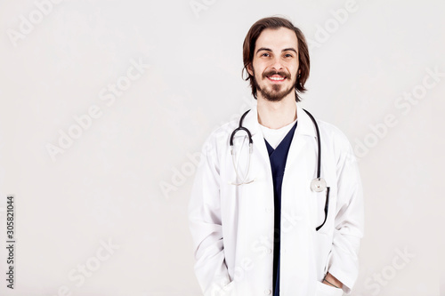 doctor, medicals, medicine, stethoscope, white, health, isolated, hospital, health care, young, portrait, professional, happy, care, woman, photogenic, clinic, confident, people, smile, uniform, nurse, person, coat, standing