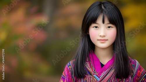 girl, portrait, young, children, teenage, autumn, fall, leaf, background, nature, pretty, cute, face, expression, serious, calm, long hair, black hair, colourful, clothing, dress, kimono, asian, japanese, model, beautiful, innocent, sweet, photo, studio, image, photo, picture, person, human, children, youth, bright, vibrant