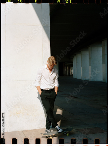 active, analog, business, businessman, casual attire, city, fashion, film, leader, lifestyle, male, man, minimalism, outdoors, park, people, person, portrait, skate, skateboard, skateboarding, skater, street, style, urban