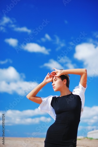 day, attractive, carefree, blue, body, cloud, palm, face, parlour, dress, dark, nature, person, purity, tanned, asian, spring, peace, background, pretty, youth, people, white, dancing, closeup, living, beach, care, authentic, restore, outstretched, expression, sunny, success, activity, beautiful, piercing, happiness, young, relax, outdoors, sad, hair, pampered, slim, elegant, sky, figure, fresh, soft