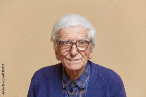 adult, age, aged, beige, blue, elder, eyeglass, grandfather, grandfather, indoor, male, man, mature, old, pensioner, pleasant, portrait, senior, senior citizen, studio, sweater