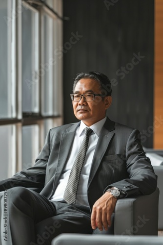 Portrait of an Asian CEO in a boardroom, Generative AI