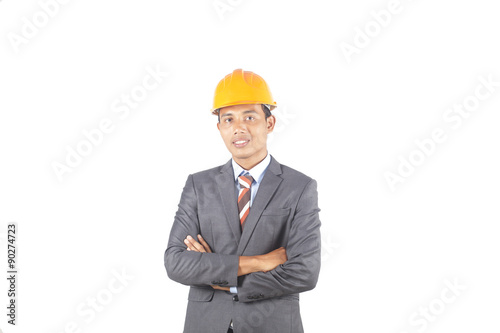 white, background, engineer, man, isolated, construction, men at work, standing, hat, hard, male, helmet, work, safety, architect, people, builder, person, young, contractor, portrait, arm, hard hat, 1, professional, engineering, business, adult, smile, job, occupation, looking, businessman, smiling, manager, studio, industry, asian, labourer