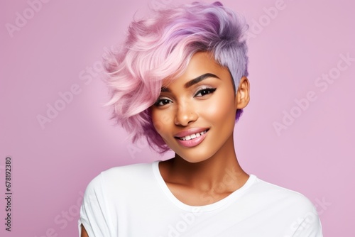 Portrait of beautiful african american woman with colorful hair. AI Generated