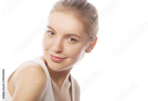 face, woman, clean, beautiful, skin, white, beauty, young, care, isolated, portrait, girl, female, fresh, background, adult, caucasian, attractive, model, pretty, 1, eye, health, neck, sensuality, studio, looking, elegance, lady, head, healthy, freshness, natural, make-up, close, up, body, hand