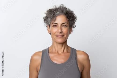 Portrait of beautiful middle-aged woman with grey hair on white background